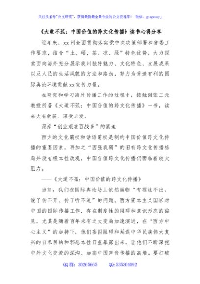 / 《大道不孤:中国价值的跨文化传播》读书心得分享