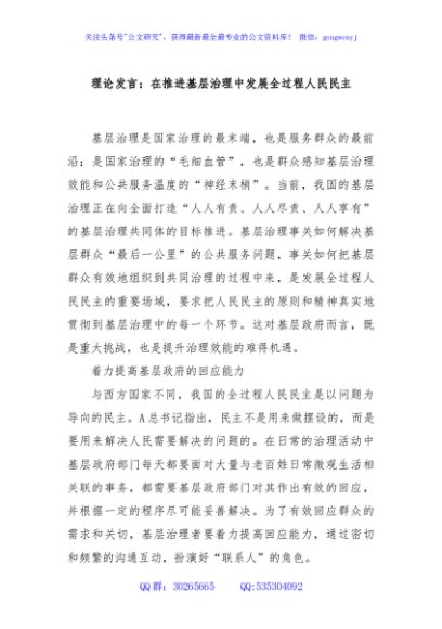 / 理论发言:在推进基层治理中发展全过程人民民主