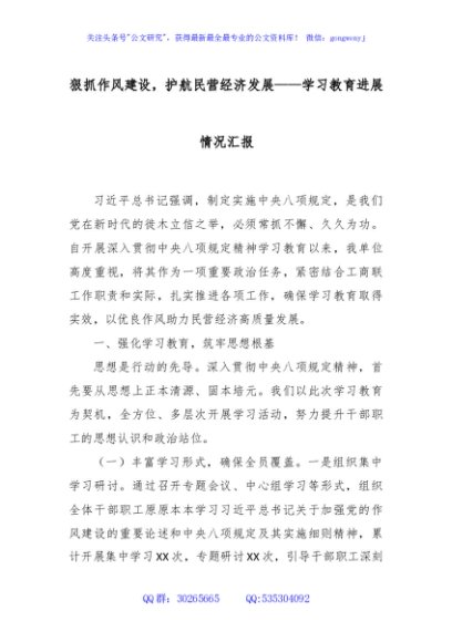 狠抓作风建设,护航民营经济发展——学习教育进展情况汇报