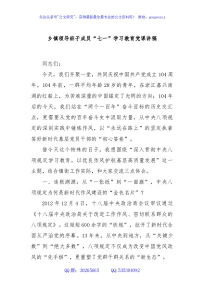 / 乡镇领导班子成员“七一”学习教育党课讲稿