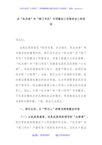 / 在“机关病”和“衙门作风”专项整治工作推进会上的讲话
