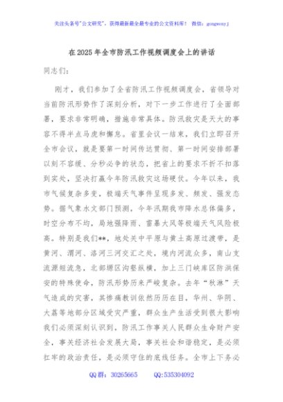 / 在2025年全市防汛工作视频调度会上的讲话