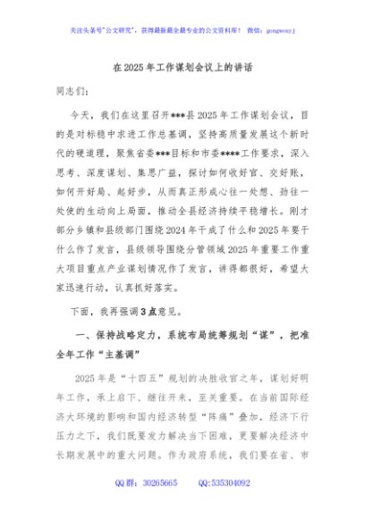 / 在2025年工作谋划会议上的讲话