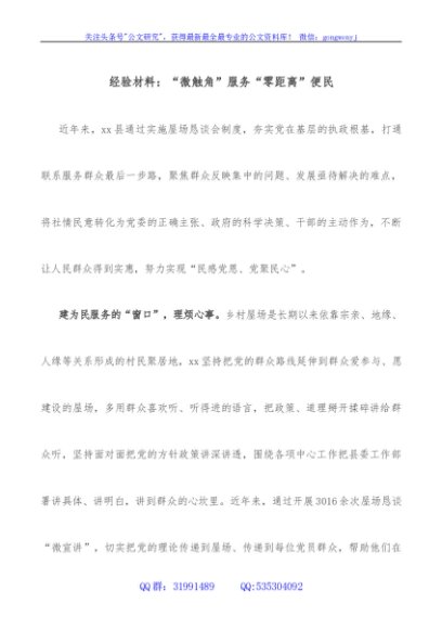 / 经验材料:“微触角”服务“零距离”便民