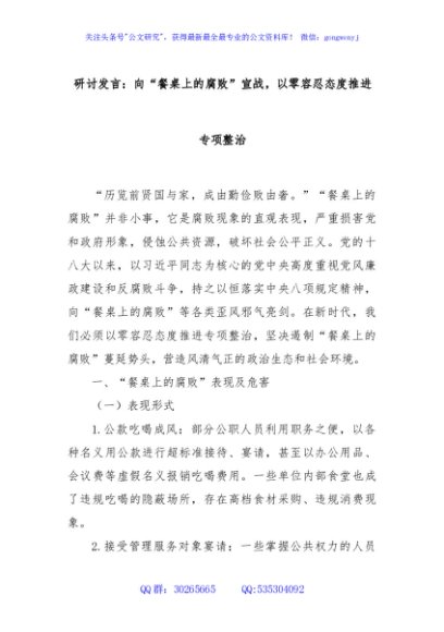 / 研讨发言:向“餐桌上的腐败”宣战,以零容忍态度推进专项整治