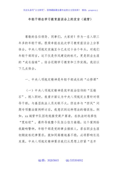 / 年轻干部在学习教育座谈会上的发言(城管)