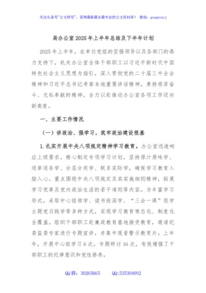 / 局办公室2025年上半年总结及下半年计划