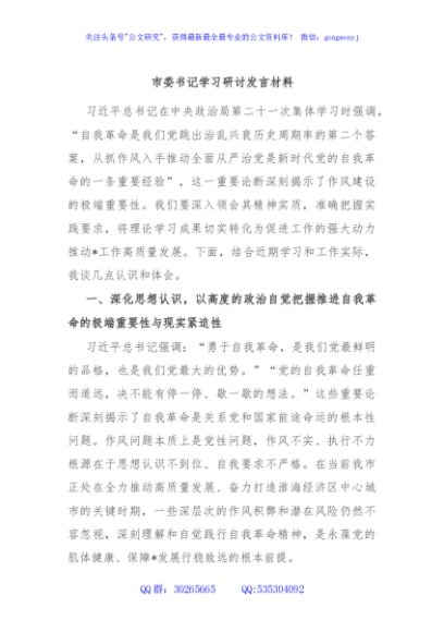 / 市委书记学习研讨发言材料