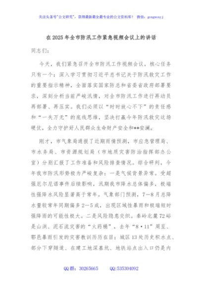 / 在2025年全市防汛工作紧急视频会议上的讲话