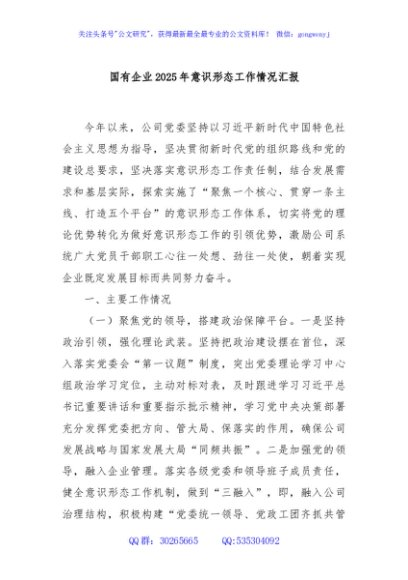 / 国有企业2025年意识形态工作情况汇报