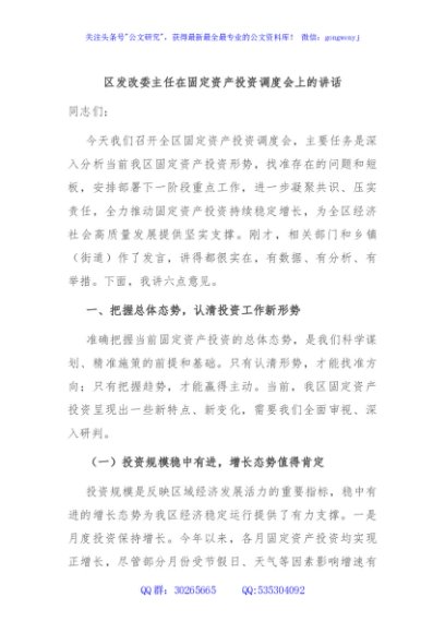 / 区发改委主任在固定资产投资调度会上的讲话