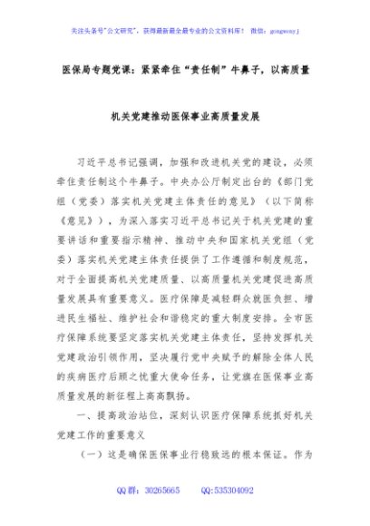 医保局专题党课:紧紧牵住“责任制”牛鼻子,以高质量机关党建推动医保事业高质量发展