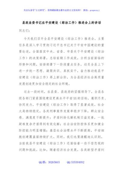 / 县政法委书记在平安建设(综治工作)推进会上的讲话