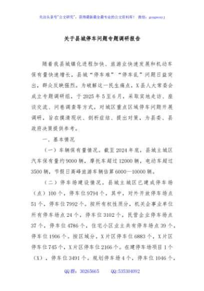 / 关于县城停车问题专题调研报告