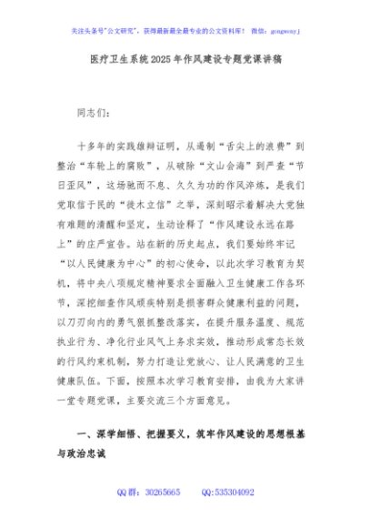 / 医疗卫生系统2025年作风建设专题党课讲稿