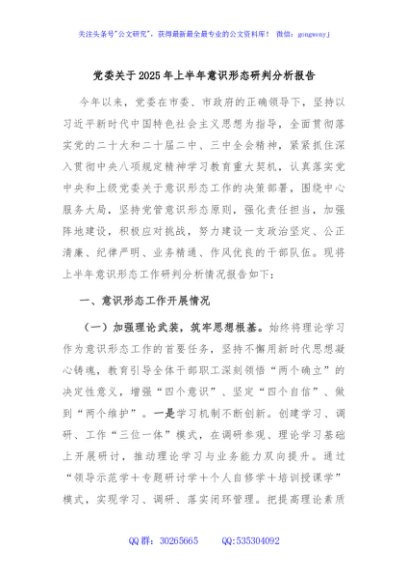 / 党委关于2025年上半年意识形态研判分析报告