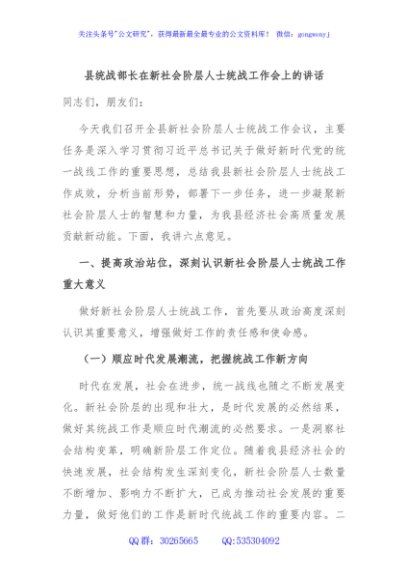 / 县统战部长在新社会阶层人士统战工作会上的讲话