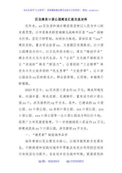 / 区住建局口袋公园建设汇报交流材料