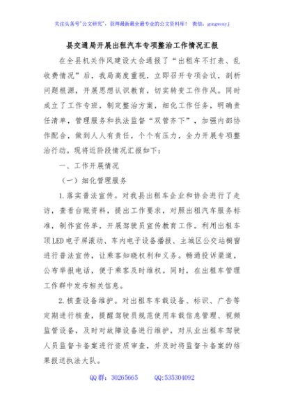 / 县交通局开展出租汽车专项整治工作情况汇报