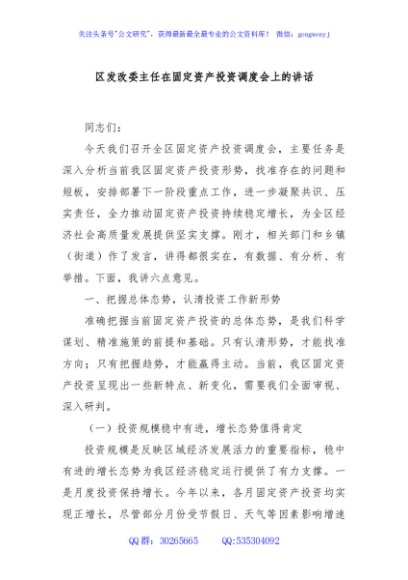 / 区发改委主任在固定资产投资调度会上的讲话