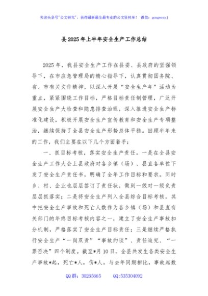 县2025年上半年安全生产工作总结