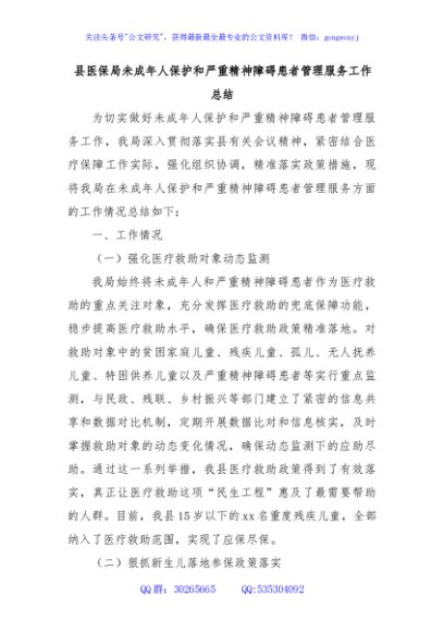 / 县医保局未成年人保护和严重精神障碍患者管理服务工作总结