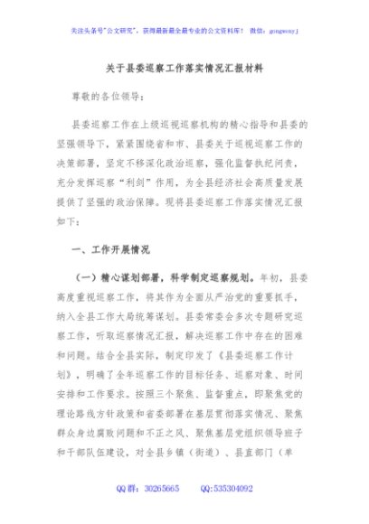 / 关于县委巡察工作落实情况汇报材料