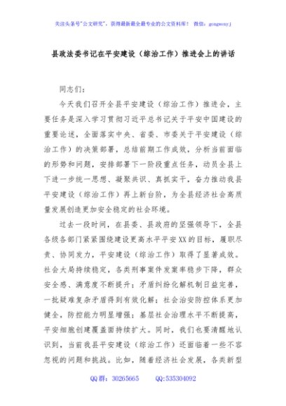 / 县政法委书记在平安建设(综治工作)推进会上的讲话
