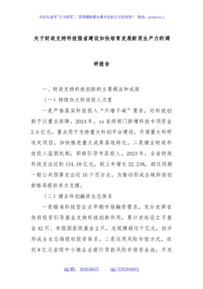 / 关于财政支持科技强省建设加快培育发展新质生产力的调研报告