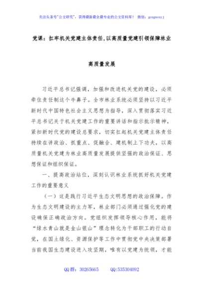 / 党课:扛牢机关党建主体责任,以高质量党建引领保障林业高质量发展