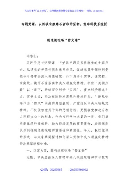 / 专题党课:以抓铁有痕踏石留印的坚韧,筑牢科技系统抵制违规吃喝“防火墙”