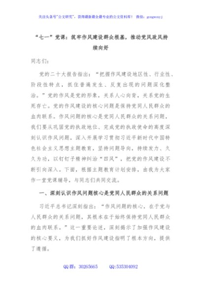 / “七一”党课:筑牢作风建设群众根基,推动党风政风持续向好