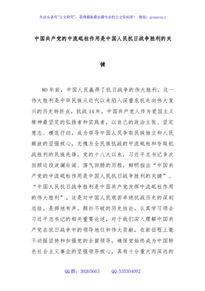 / 中国共产党的中流砥柱作用是中国人民抗日战争胜利的关键
