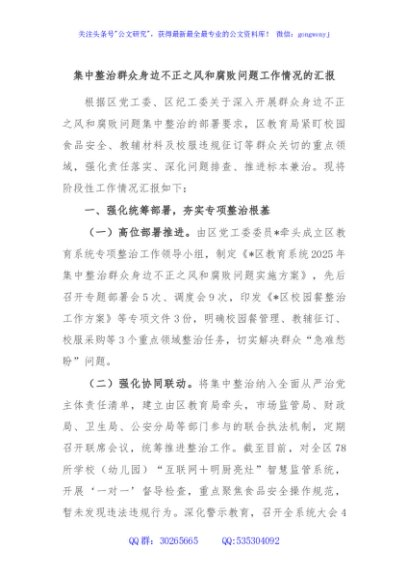 / 集中整治群众身边不正之风和腐败问题工作情况的汇报