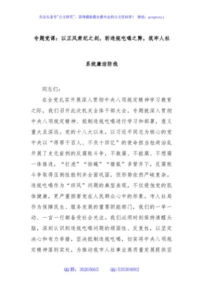 / 专题党课:以正风肃纪之剑,斩违规吃喝之弊,筑牢人社系统廉洁防线
