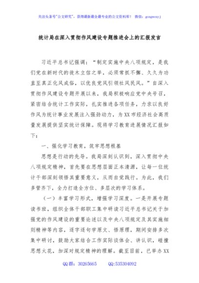 / 统计局在深入贯彻作风建设专题推进会上的汇报发言