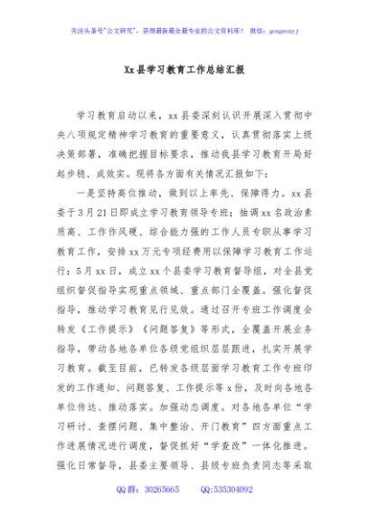 / Xx县学习教育工作总结汇报