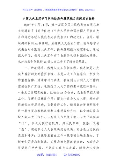 / 乡镇人大主席学习代表法提升履职能力交流发言材料