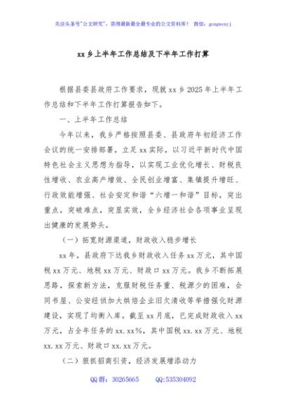 / xx乡上半年工作总结及下半年工作打算