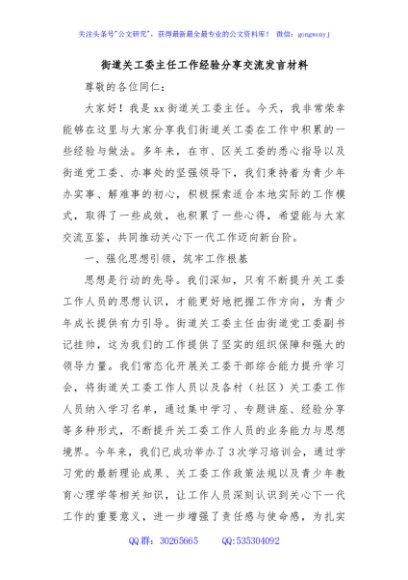 / 街道关工委主任工作经验分享交流发言材料