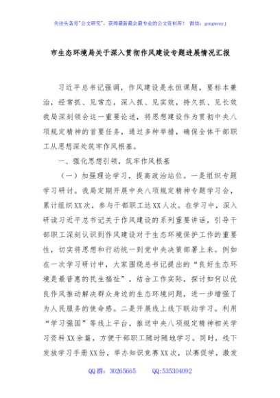 / 市生态环境局关于深入贯彻作风建设专题进展情况汇报