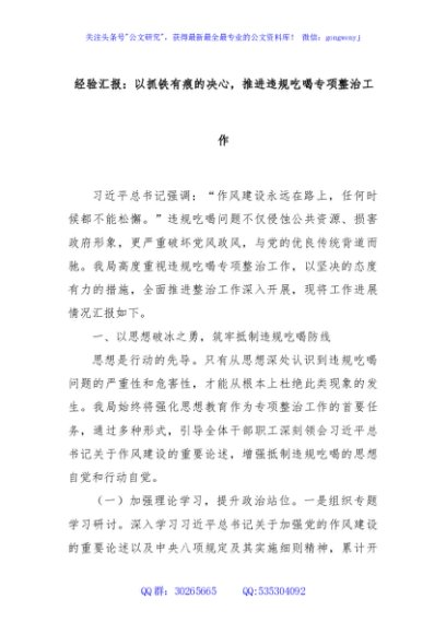 / 经验汇报:以抓铁有痕的决心,推进违规吃喝专项整治工作