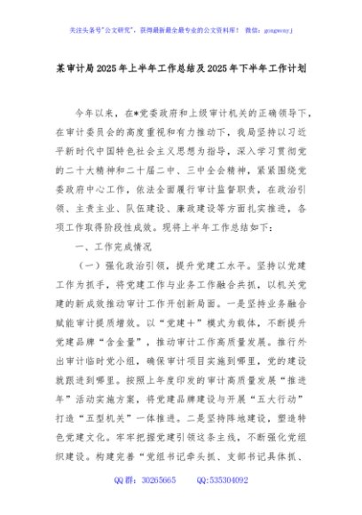 / 某审计局2025年上半年工作总结及2025年下半年工作计划