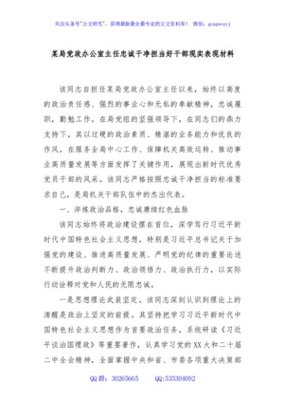 / 某局党政办公室主任忠诚干净担当好干部现实表现材料