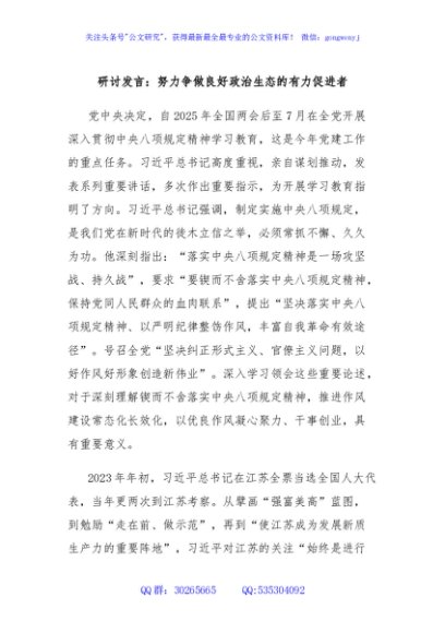 / 研讨发言:努力争做良好政治生态的有力促进者