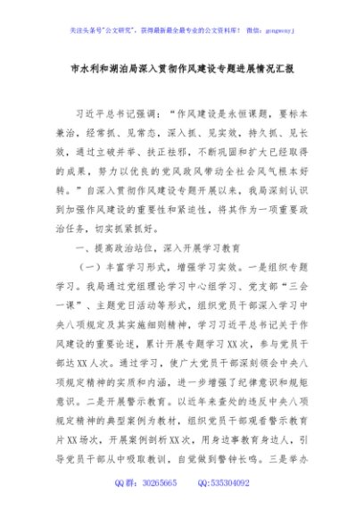 / 市水利和湖泊局深入贯彻作风建设专题进展情况汇报