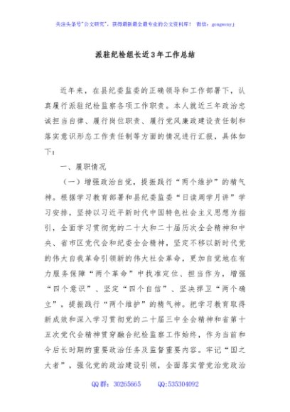 / 派驻纪检组长近3年工作总结