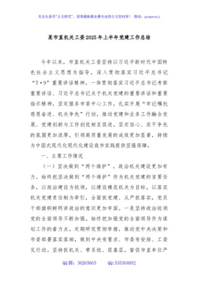 / 某市直机关工委2025年上半年党建工作总结