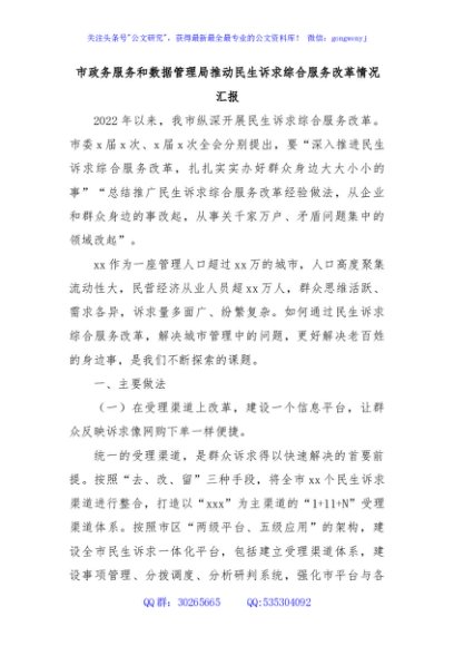 / 市政务服务和数据管理局推动民生诉求综合服务改革情况汇报