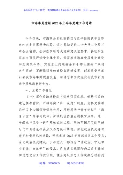 / 市海事局党组2025年上半年党建工作总结